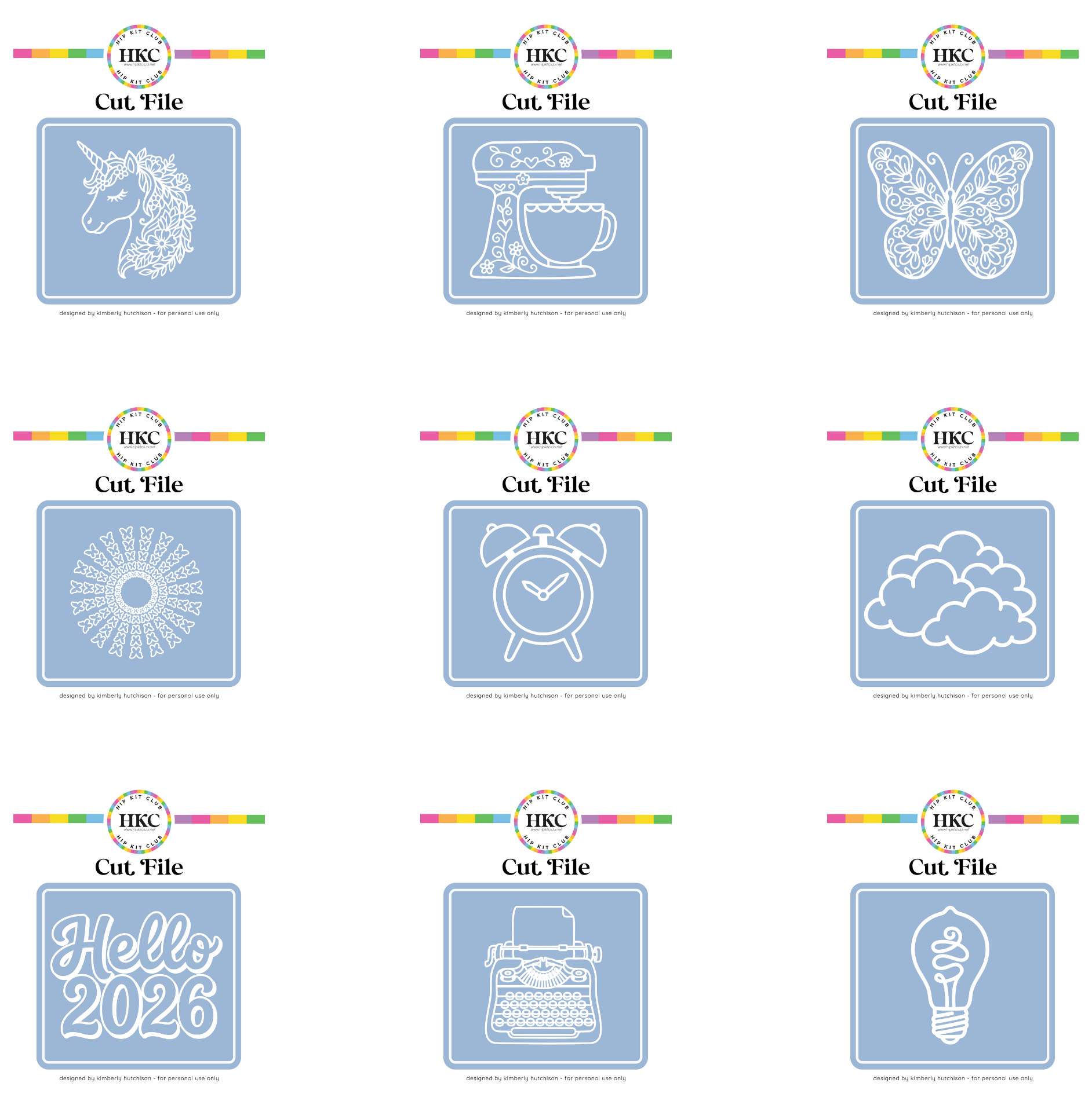 This cut file pack is free for Hip Kit Club members.